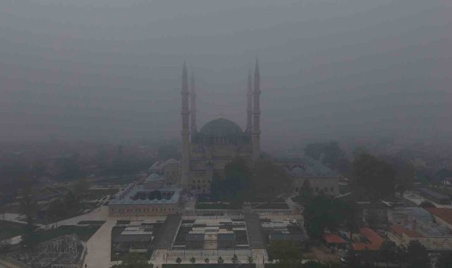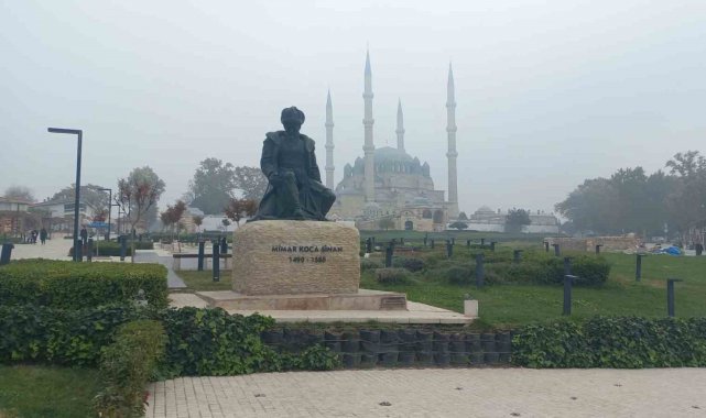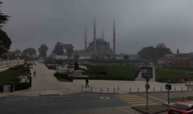 Edirne'de sabah saatlerinde etkili olan yoğun sis, tarihi yapıları adeta görünmez hale getirdi. Kentin simgesi Selimiye Camisi başta olmak üzere birçok tarihi eser sis bulutları arasında kayboldu.