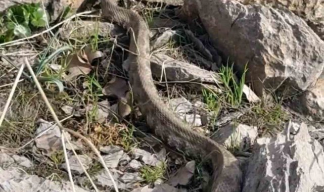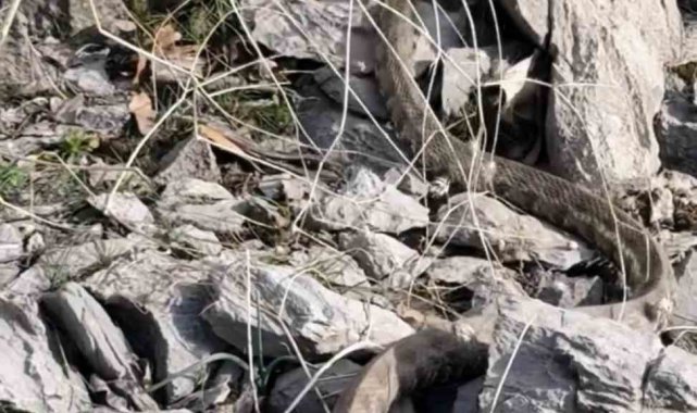 Hakkari'nin Şemdinli ilçesinde bir doğasever, kaya parçaları arasında süzülen engerek yılanını görüntüledi.