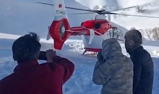 Hakkari'nin Şemdinli ilçesinde kar ve tipi nedeniyle yolu kapanan Alan köyünde sancıları başlayan hamile kadın, Sağlık Bakanlığına ait ambulans helikopterin dondurucu soğuk ve sarp araziye göğüs geren operasyonuyla hastaneye ulaştırıldı.