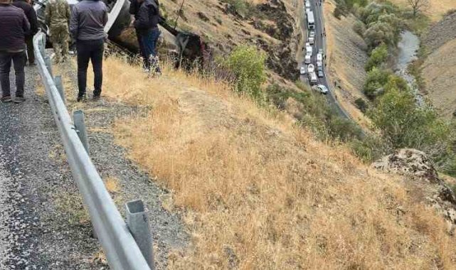 Hakkâri'nin Şemdinli ilçesinde uçuruma düşen kamyonu askeri vinç kurtardı.