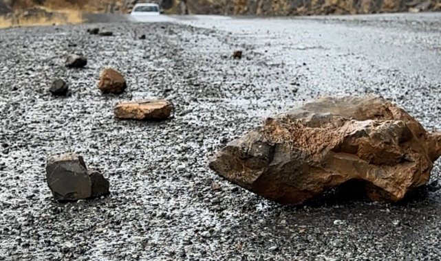 Hakkari'nin Şemdinli-Derecik ilçesi karayoluna düşen kaya parçaları dağcılar tarafından temizlendi.