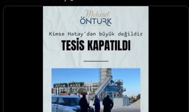 Hatay'da yaşadığı sokağın kanalizasyon hattına beton döken firma çalışanlarına "Senin vicdanın kabul ediyor mu" diyerek tepki gösteren vatandaşın uyarılarına aldırış etmeyen firmaya toplamda 212 bin TL ceza uygulandı ve firmanın faaliyetleri durduruldu. Hatay Büyükşehir Belediye Başkanı Mehmet Öntürk, sosyal medya üzerinden yaptığı açıklamada "Kimse Hatay'da verdiğimiz bunca emeğin üzerine beton dökemez. Kuralları ihlal eden her adımın karşılığı olacak" dedi.