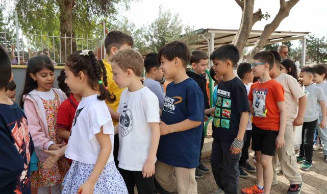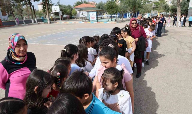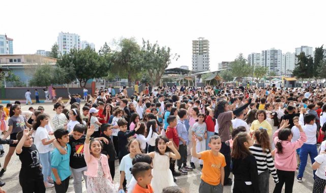 Okul bahçesinde renkli görüntülerin oluştuğu bayramlaşma programında öğrenciler ve öğretmenler eğlenceli vakit geçirdi.