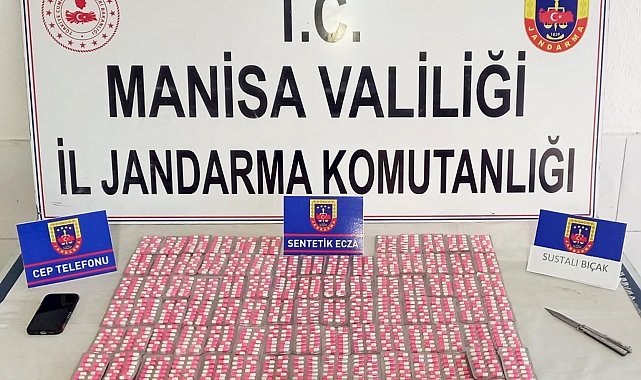 Edinilen bilgilere göre, Manisa İl Jandarma Komutanlığı İstihbarat ve KOM Şube Müdürlüğü ile Soma İlçe Jandarma Komutanlığı ekiplerinin koordineli çalışması sonucu, Y.K. (25) isimli şahsın üzerinde ve ikametinde arama yapıldı. Yapılan aramalarda toplam 2 bin 860 adet sentetik ecza hap, 1 adet bıçak ve 1 adet cep telefonu ele geçirildi.