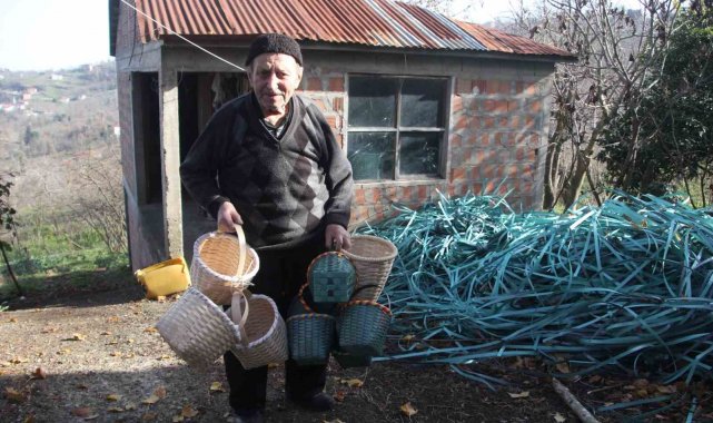 Ordu'nun Gülyalı ilçesinde yaşayan 88 yaşındaki Haki Atasever, 10 yaşında fındık dalları ile öğrendiği sepet örme işini halen devam ettiriyor.