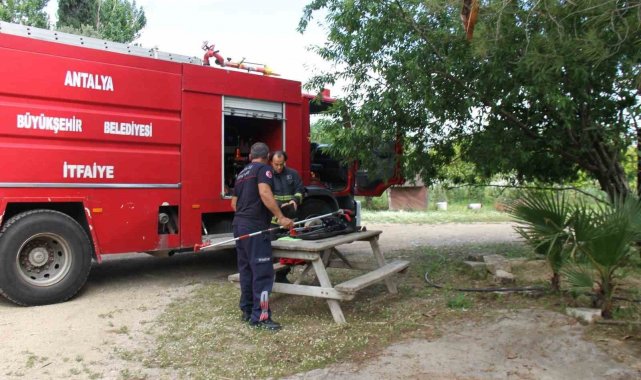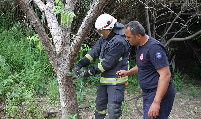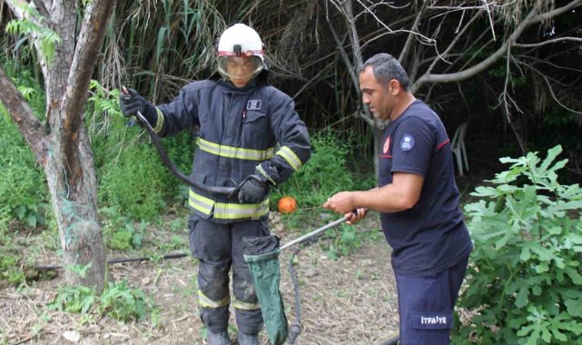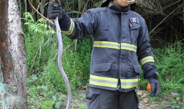Serik'te ağlara dolanan yılanı itfaiye kurtardı