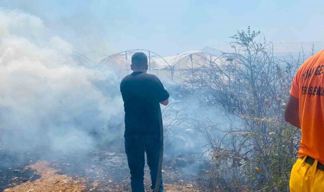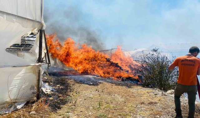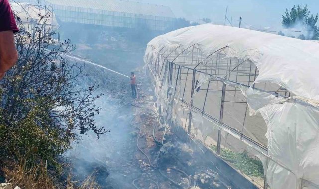 Antalya'nın Serik ilçesinde çalılık alanda çıkan yangın, rüzgarın etkisiyle seralara sıçradı. Yangın ekiplerin hızlı müdahalesiyle kontrol altına alındı.