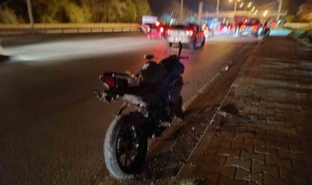 Şerit değiştirmeye çalışan motosiklet otomobile çarptı