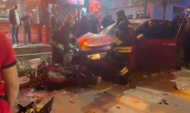 Edinilen bilgiye göre kaza, saat 22.00 sıralarında Atatürk Caddesi'nde meydana geldi. M.Ç. yönetimindeki otomobil, seyir halindeyken şerit ihlali yapması sonucu sağ taraftan hızla gelen Y.K. idaresindeki araca çarptı. Çarpmanın etkisiyle park halindeki 2 araç ve 3 motosiklet de hasar gördü. Toplam 7 aracın karıştığı kazada E.D. ve H.Ö. hafif şekilde yaralandı. Yaralılar olay yerine gelen sağlık ekiplerinin ilk müdahalesinin ardından hastaneye kaldırıldı. Yaralıların hayati tehlikesinin bulunmadığı öğrenildi. Kaza anı ise saniye saniye çevredeki iş yerlerinin güvenlik kamerasına yansıdı.