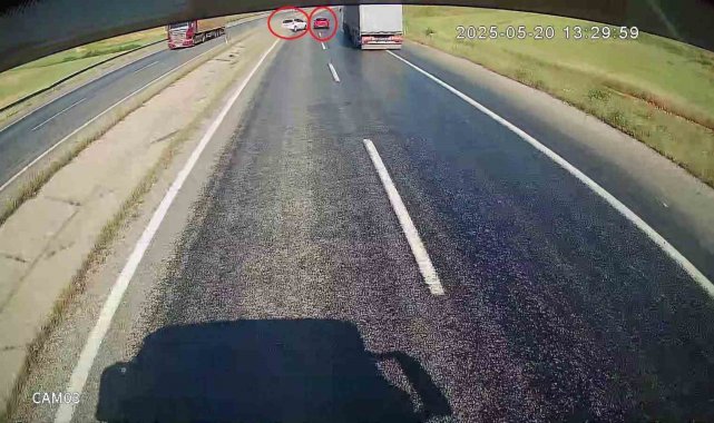 Kazaya neden olan şerit ihlali anları seyir halinde olan otobüsün güvenlik kamerasına yansıdı. Görüntülerde, otomobilin manevrası sonrası, başka otomobilin kontrolden çıkarak yoldan savrulduğu ve takla attığı anlar görüldü.