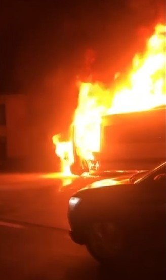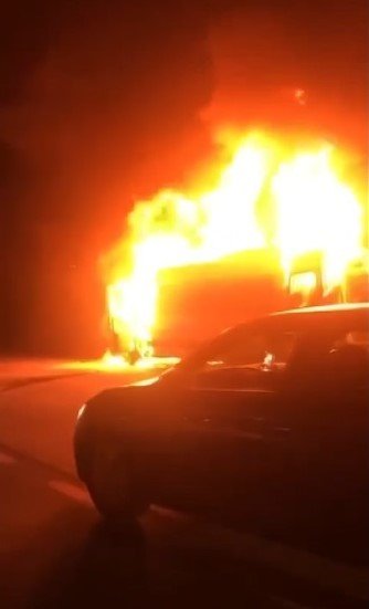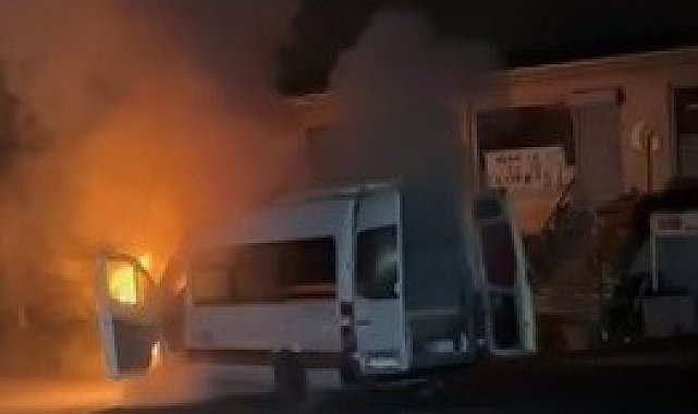 Servis minübüsü alev topuna döndü: İşçiler ölümden kıl payı kurtuldu