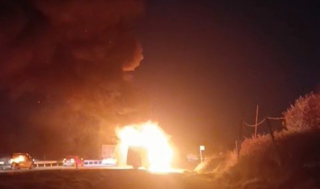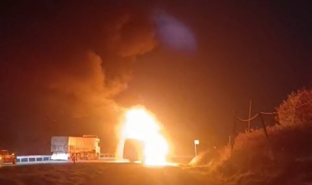 Bursa'da işçileri taşıyan servis otobüsü, alev topuna döndü.