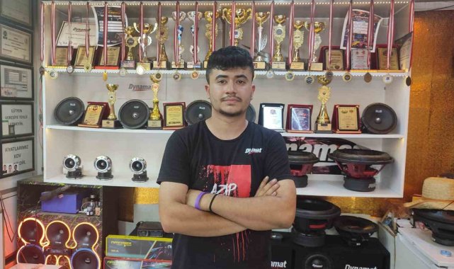 DENİZLİ (İHA) – Denizli'de otomobil ses sistemlerine olan tutkusunu mesleğe çeviren genç, 2 yılda üç Türkiye rekoru kırdı, sayısız kupa ve ödül kazandı.