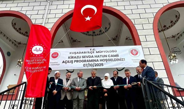 Aydın'ın Kuşadası ilçesinde Hayırsever Fehmi Aygün tarafından yapımı tamamlanan Kuşadası Müftülüğü Kirazlı Sevda Hatun Camii, Taziye Evi ve İmam Lojmanı, düzenlenen törenle hizmete açıldı.