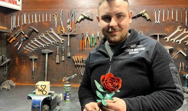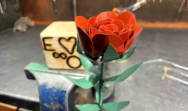 Tavşanlı ilçesi Durak Mahallesi'nde kesim motoru tamiri iş yeri bulunan Osman Nuri Özata, nişanlısı Emine için Sevgililer Günü'ne özel solmayacak gül yaptı. Osman Nuri Özata kendi elleriyle yaptığı gül için, "Nişanlıma 14 Şubat hediyesi olarak solmaz, yaşlanmaz, bozulmaz bir gül yapmak istedim. O da çok güzel oldu. Kendi el emeğim göz nurum. Demirden, ahşaptan, isimleri ve her şeyi kendim yaptım. Canlı çiçek almayı seviyorum. Ancak onlar bir müddet sonra soluyor ama bu solmayacak" diyerek nişanlısının da beğeneceğini umduğunu söyledi.