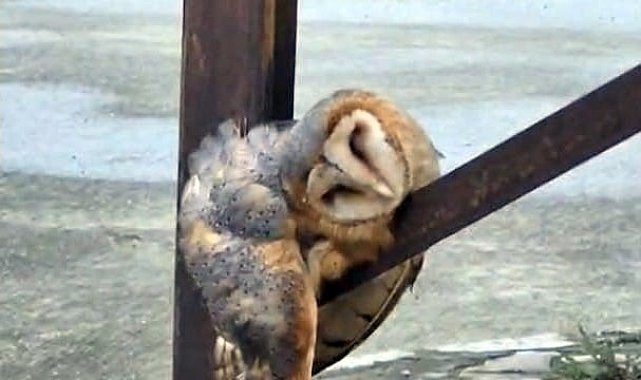 Sevimli Baykuş sokak direğinde uyuya kaldı