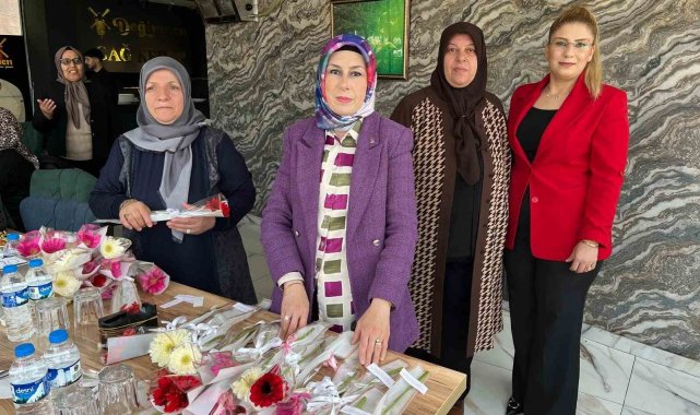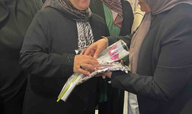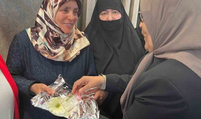 Yemek programında şehit yakınlarına çiçek hediye edildi.