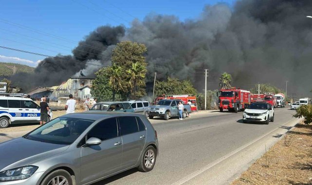 Muğla'nın Seydikemer ilçesindeki kereste deposundaki yangını söndürme çalışmaları devam ediyor.