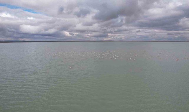 Seyfe Gölü'nde flamingo cümbüşü havadan görüntülendi