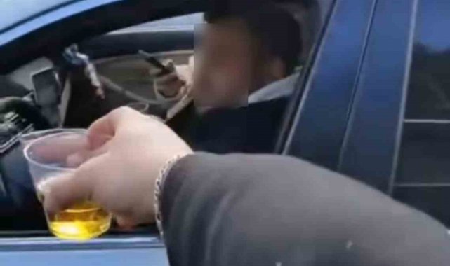 Bursa Uludağ yolunda ilerleyen otomobil sürücüsü, yanına başka bir araçla yanaşan arkadaşı ile seyir halindeyken alkol alıp kadeh tokuşturdu. O anları kayda alan sürücü, sosyal medyada paylaşım yapınca vatandaşlar tarafından da tepki aldı. Olayla ilgili tahkikat başlatıldı.