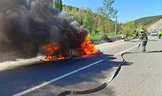 Bilecik'te seyir halinde iken bir anda alevler yükselen araç cayır cayır yandı.