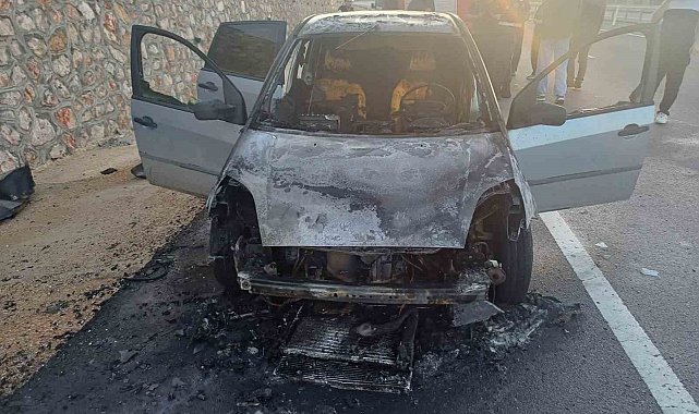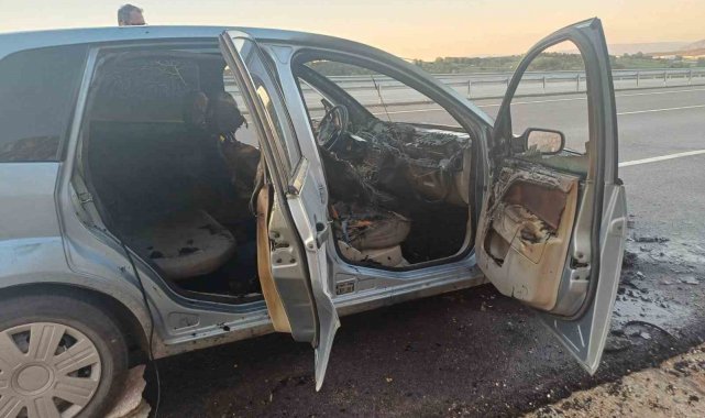 Yaşanan yangında araçta maddi hasar meydana geldi.