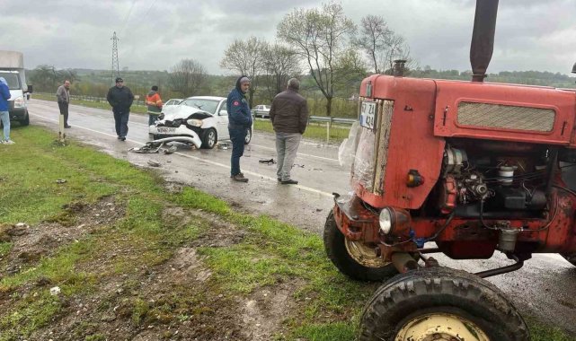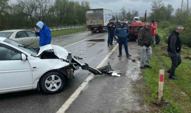Seyir halinde giden otomobil, traktöre çarptı: 2 yaralı
