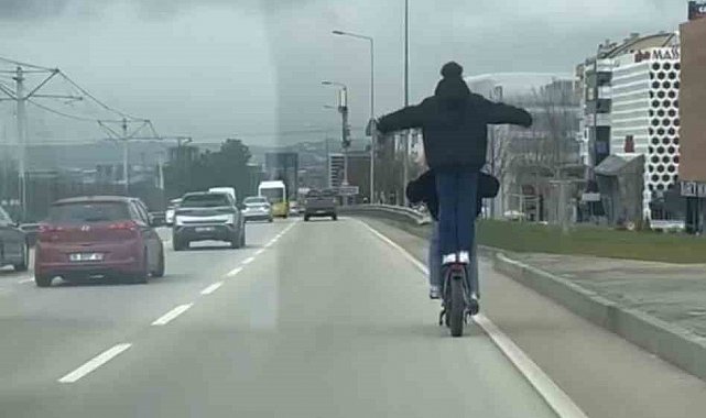 Gülümseten görüntüler merkez Nilüfer ilçesi İzmir Yolu Caddesinde kayda alındı. Bisiklet ile seyir halinde olan gencin arkasında bulunan yolcu bir anda kendisini kuş zannetti. Kollarını açtıktan sonra çırpan genç komik görüntüler oluşturdu. İlginç anlar, diğer sürücüler tarafından saniye saniye kaydedildi.