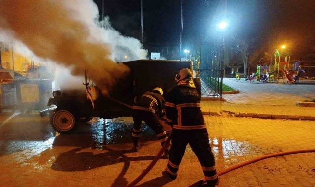 Yangın sonucu araçta maddi hasar meydana gelirken, olayla ilgili inceleme başlatıldı.