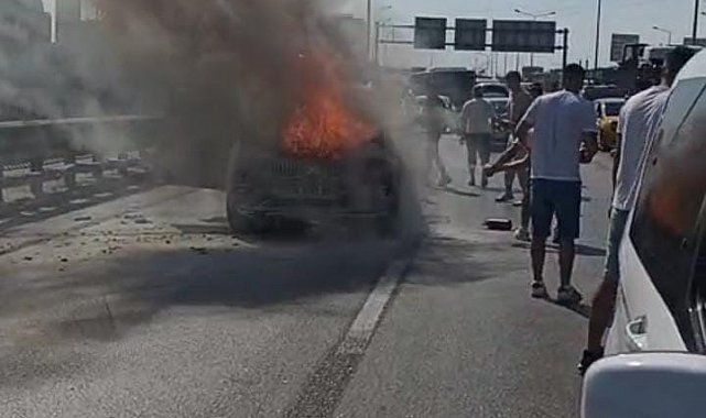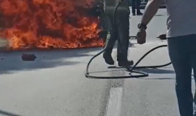 Seyir halindeki araç alev alev yandı