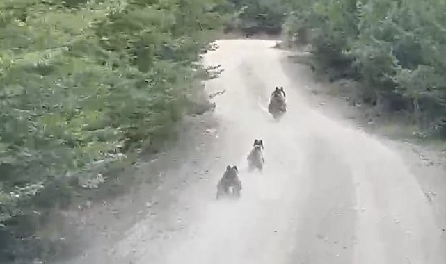 Edinilen bilgiye göre, üre ilçesine bağlı Kösreli köyü yolunda anne ayı ve üç yavrusu, seyir halindeki bir aracın önüne çıktı. Ayıları fark eden vatandaşlar o anları cep telefonlarıyla görüntüledi. Bir süre aracın önünde koşan ayı ve yavruları daha sonra ormanlık alana girerek gözden kayboldu.