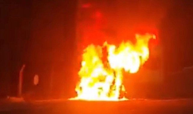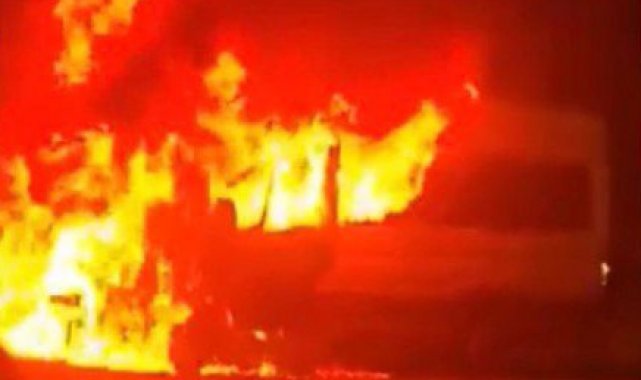 Seyir halindeki işçi servisi alev topuna döndü