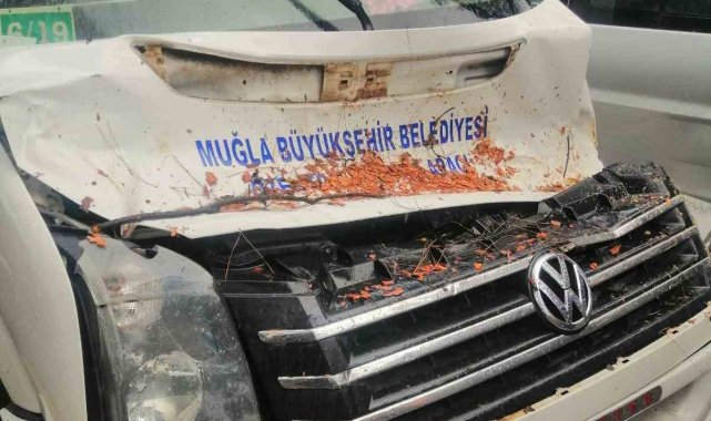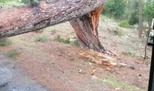 Muğla'nın Yatağan ilçesinde meydana gelen ilginç kazada, seyir halindeki bir dolmuşun üzerine çam ağacı devrildi.