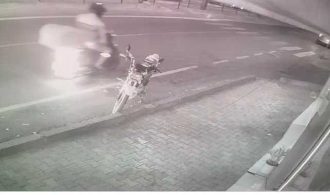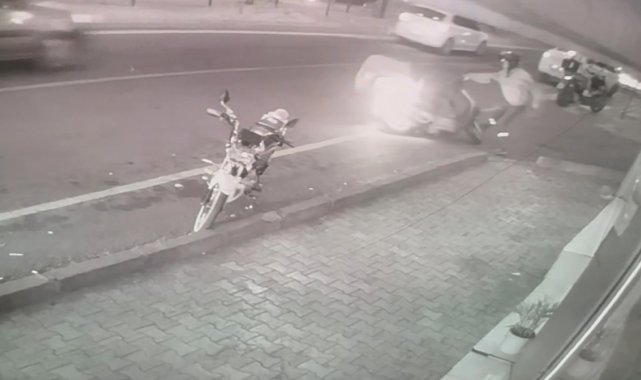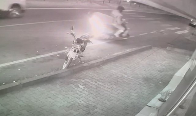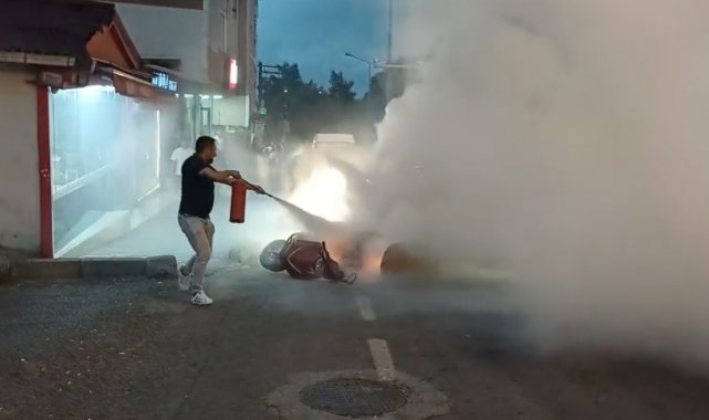 Seyir halindeki motosiklet yandı, olay anı güvenlik kamerasında