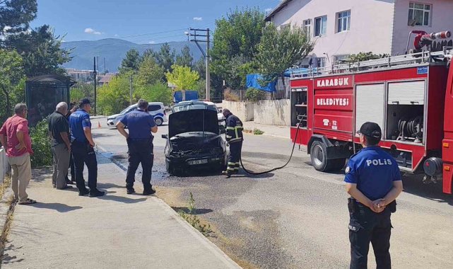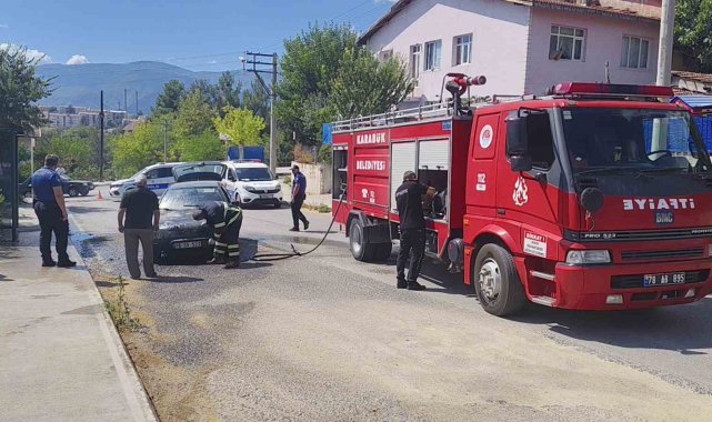 Karabük'te seyir halindeki otomobil alevlere teslim oldu. Yangında otomobilde maddi hasar meydana geldi.