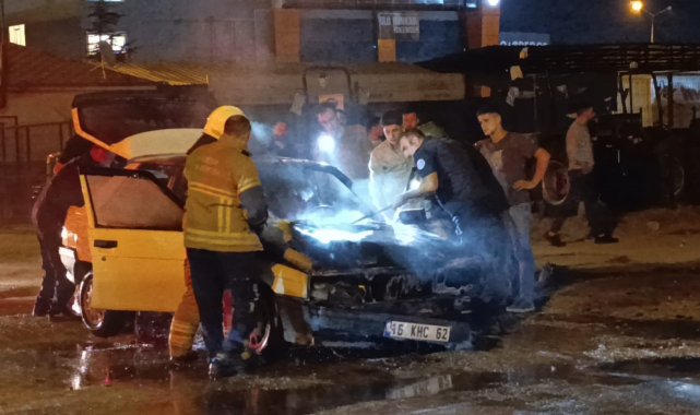 Seyir halindeki otomobil alev alev yandı