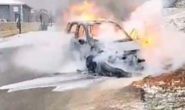 Seyir halindeki otomobil alev alev yandı