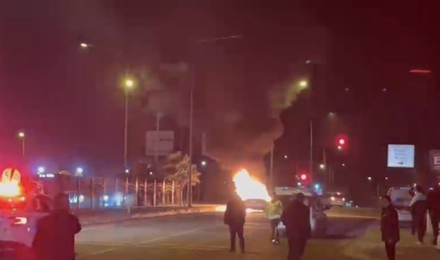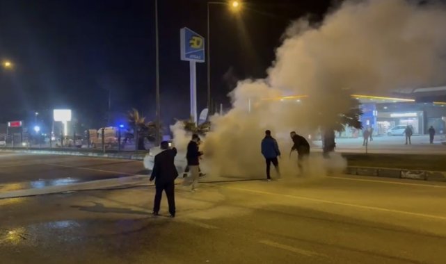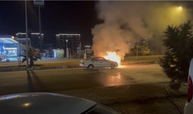 Adıyaman'da seyir halinde olan bir otomobil alev alev yandı.