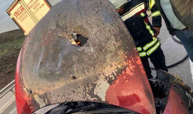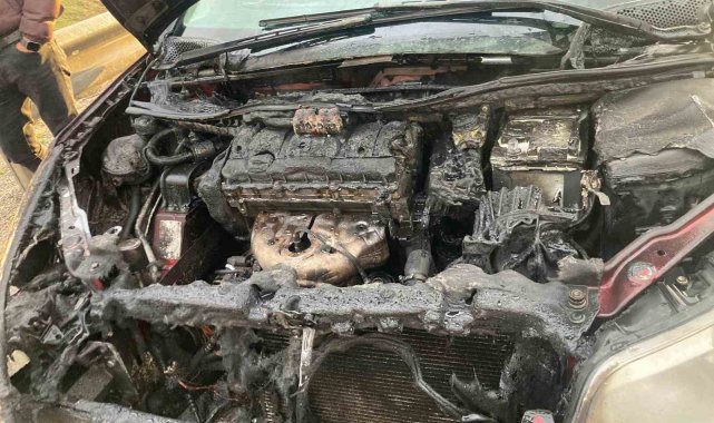 Otomobilde 4 yolcu bulunduğu öğrenilirken itfaiye ekiplerinin olay yerine yakın olması olası bir faciayı önledi.