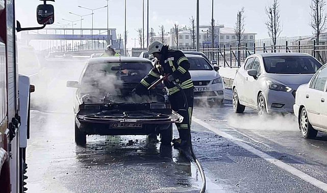 Erzurum - Çat kara yolu Şehir Hastanesi kavşağında meydana gelen olayda, kent merkezine seyir halindeki özel otomobilden bir anda dumanlar yükselmeye başladı. Aracını yol ortasında durdurarak inen sürücü durumu hemen itfaiye ekiplerine bildirdi. Kısa sürede olay yerine gelen Erzurum Büyükşehir Belediyesi ekiplerinin müdahalesiyle yangın söndürüldü.