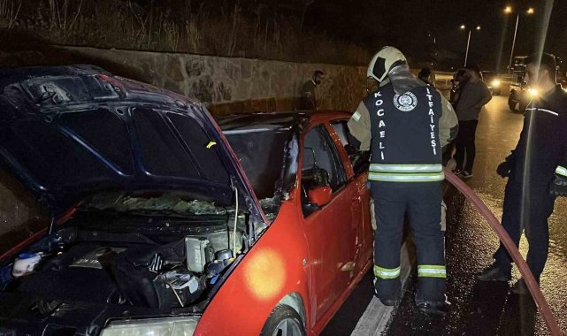 Kocaeli'nin Gebze ilçesinde seyir halindeki otomobil alev aldı. Otomobilde bulunan 3 kişi son anda araçtan inmeyi başardı.