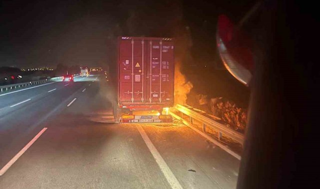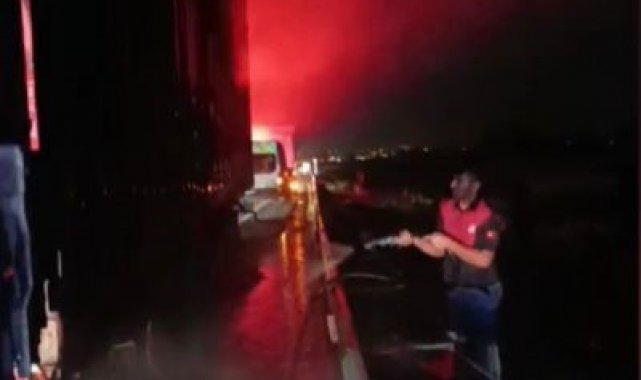 Seyir halindeki tır alev aldı: Makarnaları dorseden atarak kurtarmaya çalıştı