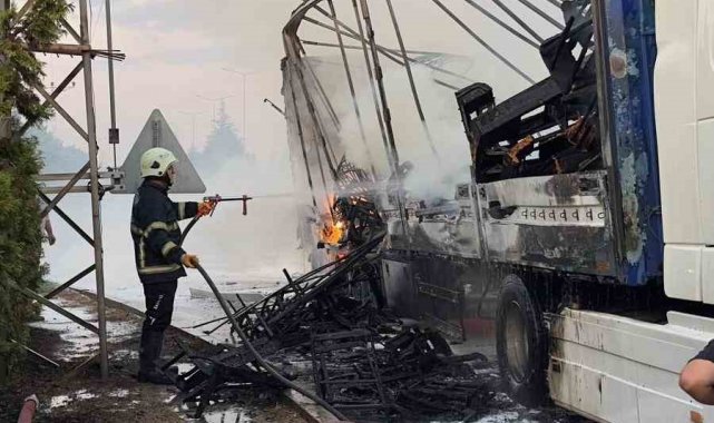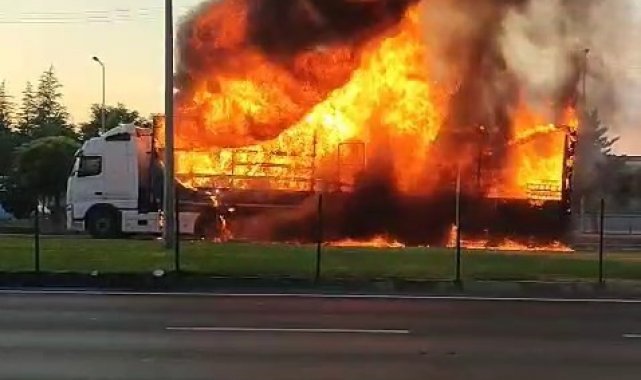 Nevşehir'de seyir halindeki tır alevlere teslim oldu.