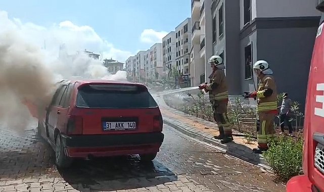 Hatay'ın İskenderun ilçesinde seyir halindeyken alevlere teslim olan Tofaş otomobilde yangın çıktı.
