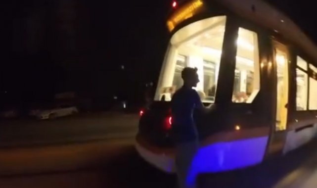 Seyir halindeki tramvaya asılarak paten kaydı, uyarıya "Zevkli oluyor" cevap verdi