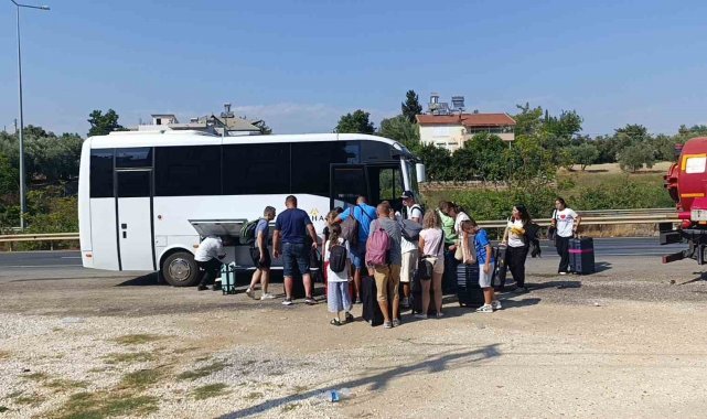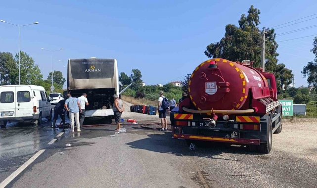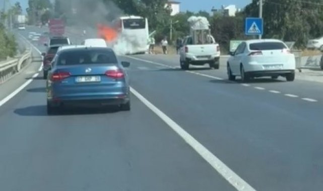 Antalya Havalimanı'ndan aldığı Polonyalı turistleri, Alanya'daki otellerine götürmek için yola çıkan tur otobüsü seyir halindeyken yandı. Korku içinde kaldıkları gözlenen turistler burunları bile kanamadan tahliye edilirken, olay yerine çağrılan otobüslerle konaklayacakları otellere götürüldüler.