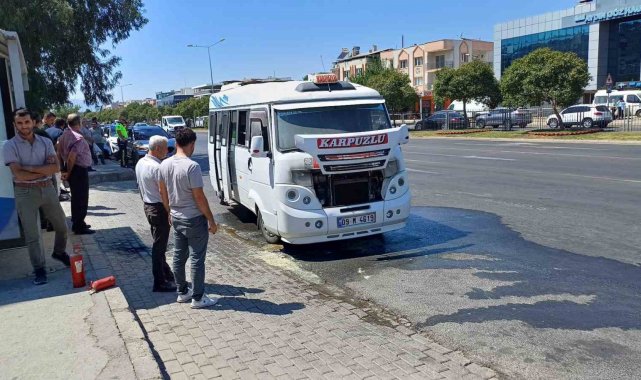Aydın'da seyir halindeki bir yolcu minibüsü motor kısmından aniden yanmaya başladı. Kısa süreli panik yaşanan olayda, yangın büyümeden söndürüldü.