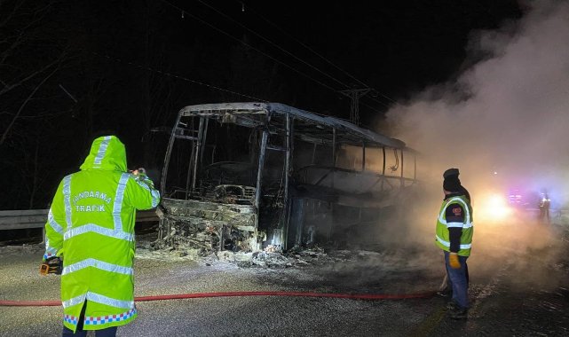 Olay, Bozkurt-Kastamonu kara yolu Isırganlık mevkisinde meydana geldi. Edinilen bilgiye göre, Bozkurt ilçesinden İstanbul'a sefer yapan 34 HKK 230 plakalı yolcu otobüsünde yangın çıktı. 20 yolcunun bulunduğu otobüsteki yangını fark eden sürücü aracı durdurdu. Otobüsten inen vatandaşlar yara almadan kurtulurken, kısa sürede büyüyen yangın otobüsü sardı. İhbar üzerine olay yerine itfaiye ve Orman İşletme Müdürlüğü ekipleri sevk edildi. Olay yerine gelen ekiplerin müdahalesi ile yangın kontrol altına alınarak söndürüldü. Yanan yolcu otobüsünden geriye ise demir yığını kaldı.