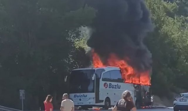 Seyir halindeki yolcu otobüsü alev topuna döndü