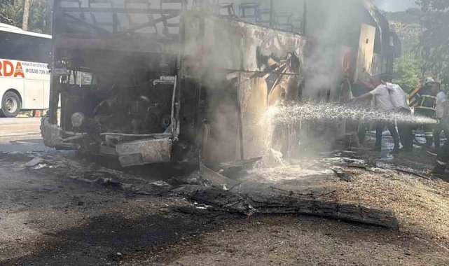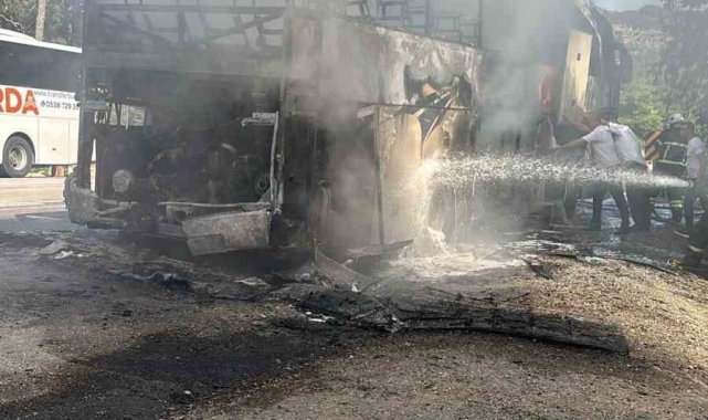 Isparta-Antalya kara yolunda seyir halindeyken alev alan yolcu otobüsünde yolcular son anda tahliye edildi. Yangında can kaybı yaşanmazken, otobüsün yarısı küle döndü.